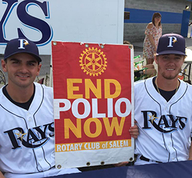 My district has planned several events leading up to World Polio Day. Two of which were held at minor league baseball parks. On 13 July, the Rotary Club of Bluefield, West Virginia hosted Rotary Night at the Park with the Blue Jays in lieu of their regular meeting.  Baseball caps were handed out to the first 300 attendees as we enjoyed fellowship and raised awareness for Rotary’s polio eradication efforts.